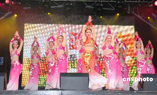 當?shù)貢r間2月1日,英國倫敦盛大的中國新年慶典在特拉法加廣場開幕,中國國務(wù)院僑辦組織的“文化中國·四海同春”藝術(shù)家赴現(xiàn)場演出助陣。圖為昆明市民族歌舞劇院正在演出具有少數(shù)民族風情的歌舞節(jié)目。