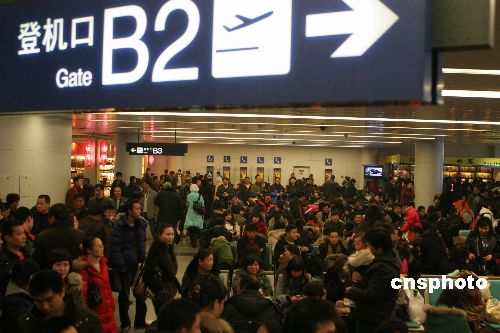 2月2日,牛年春節(jié)后首場濃霧籠罩川西大地。成都雙流國際機(jī)場受濃霧襲擊發(fā)布了三級預(yù)警信號,機(jī)場關(guān)閉達(dá)四個多小時,直接造成一百二十一個進(jìn)出港航班延誤,并導(dǎo)致十個進(jìn)出港航班取消,來自新加坡、浦東的個別進(jìn)港航班分別備降昆明、重慶,同時致使近一點(diǎn)三萬名旅客受阻于機(jī)場。中新社發(fā) 呂俊明 攝