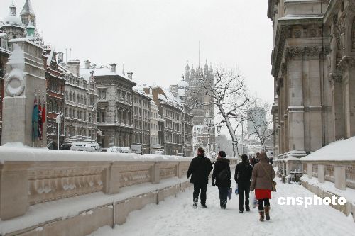 圖為英外交部附近街道覆蓋著厚厚的積雪。中新社發(fā) 李鵬 攝