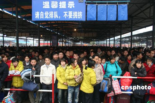湖南衡陽(yáng)火車站是湘南地區(qū)節(jié)后旅客最大的集散地,2009年1月31日以來(lái),日發(fā)送旅客5.5萬(wàn)余人次,創(chuàng)歷史新高。連日來(lái),衡陽(yáng)鐵路公安處全警出動(dòng),分布在衡陽(yáng)火車站安檢口、售票廳、站臺(tái)等崗位,組織旅客有序進(jìn)站,確保廣大旅客群眾出行安全。中新社發(fā) 劉愛(ài)成 攝