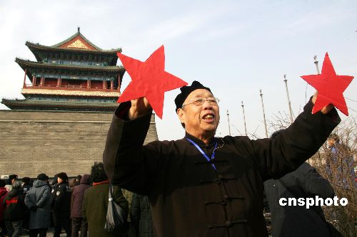 北平和平解放的見證者手持紅星重溫當年歷史時刻。中新社發(fā) 富田 攝