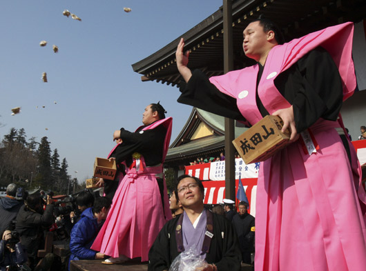 2月3日,在日本靜岡縣熱海市舉行了“撒豆子”儀式,炒熟的黃豆在日本被稱為“福豆”,儀式主辦方請(qǐng)來(lái)名人站在高處,將炒熟的黃豆拋向人群,以驅(qū)邪迎福,祈愿身體健康。