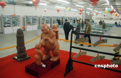 2月4日,由福州市人口計生委主辦的中華性文化展在福州萬象城舉行,此類展覽在福州尚屬首次,可是觀者寥寥。據(jù)悉,展品由“亞洲性學(xué)第一人”劉達(dá)臨與胡宏霞所創(chuàng)辦的中華性文化博物館提供,約800件,包括陶器、瓷器、雕塑等,其中最古老的是9000年前的一個陶塑女神像。 中新社發(fā) 張斌 攝