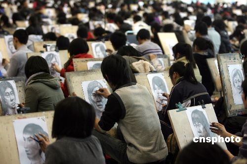 2月5日上午8點(diǎn)整,山東省2009年藝術(shù)類考生藝術(shù)專業(yè)考試正式拉開帷幕。山東工藝美術(shù)學(xué)院由于考生人數(shù)眾多,將考場搬進(jìn)了20000余平方米的濟(jì)南市舜耕會展中心,讓近7000多名美術(shù)類專業(yè)考生在展廳內(nèi)同時(shí)參加考試,一展身手。