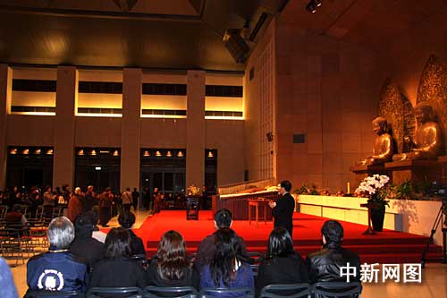 臺(tái)灣法鼓山創(chuàng)辦人圣嚴(yán)法師三日?qǐng)A寂,四日移靈金山法鼓山世界佛教教育園區(qū)大殿供信眾瞻仰,圖為五日晚信眾不斷前往法鼓山瞻仰圣嚴(yán)法師法相,見(jiàn)師父最后一面。中新社記者:陳立宇 攝