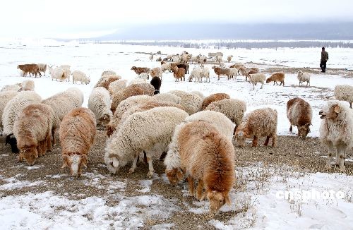 2月5日,受冷空氣影響,新疆哈密北部沿天山一帶降雪,緩解了當(dāng)?shù)睾登,對草場返青十分有利?br>