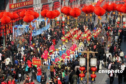 2月9日上午,來(lái)自北京、河北、山東等3個(gè)省市的12支花會(huì)隊(duì),在前門大街舉行“傳統(tǒng)民間花會(huì)踩街”活動(dòng),喜迎正月十五元宵節(jié)的到來(lái)。踩街是一種中國(guó)傳統(tǒng)民間民俗藝術(shù)表演形式,類似國(guó)外的花車游行,表演隊(duì)伍邊行進(jìn)邊表演,游客沿途觀看;〞(huì)隊(duì)從正陽(yáng)門箭樓南側(cè)和前門五牌樓出發(fā),16只南獅和北獅為大隊(duì)人馬開(kāi)道,隨后中幡、旱船、二魁摔跤、地秧歌、鼓子秧歌等將依次向珠市口行進(jìn)。