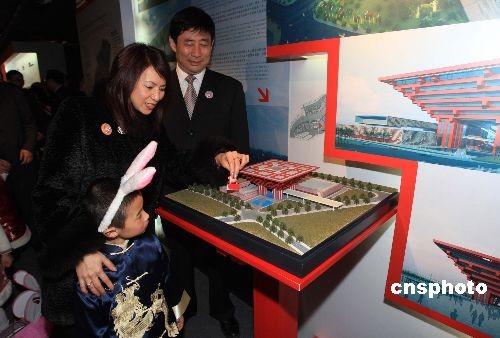 2月9日,在元宵佳節(jié)之際,“上海世博會(huì)澳門推廣周”在上海開幕,中國2010年上海世博會(huì)澳門館模型——“玉兔宮燈”展館方案亮相。圖為上海世博會(huì)澳門籌備辦公室主任楊寶儀將“玉兔宮燈”安放在世博會(huì)中國館。中新社發(fā) 潘索菲 攝