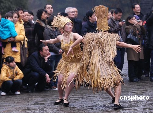 2月9日,湖北省恩施土家族苗族自治州土司城內(nèi),民間藝人通過(guò)表演擺手舞、茅古斯舞、采蓮船,唱響抬工號(hào)子、山民歌,以本民族最傳統(tǒng)的民俗慶祝元宵佳節(jié),祈福新年風(fēng)調(diào)雨順、國(guó)泰民安,吸引了大批來(lái)自省內(nèi)外的游客。中新社發(fā) 沈祥輝 攝