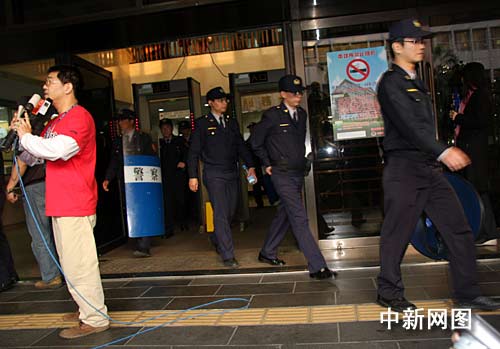 吳淑珍離開前警察走出地院在周邊戒備。中新社記者 陳立宇 攝