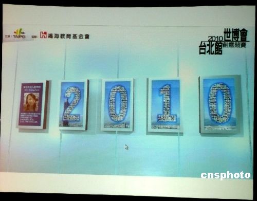 圖為屆時將現身臺北館的由臺北市民的照片組成的2010字樣的“笑臉墻”。中新社發(fā) 路梅 攝