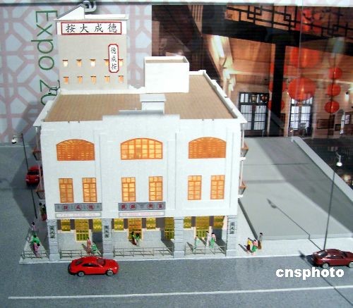 2009年2月11日,上海世博會展示中心展出的澳門百年老當(dāng)鋪“德成按”模型。2月9日,上海世博會城市最佳實踐區(qū)澳門實物建設(shè)案例“德成按”在上海世博園區(qū)破土動工。據(jù)了解,德成按”實物建設(shè)案例在城市最佳實踐區(qū)內(nèi),占地486平方米,總建筑面積1949.7平方米,建筑物總高度為23.68米。