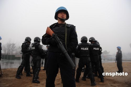 圖:中國(guó)赴海地維和警察防暴隊(duì)冒雨訓(xùn)練(5)