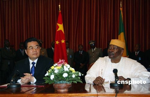 圖:胡錦濤與馬里總統(tǒng)杜爾共見(jiàn)記者