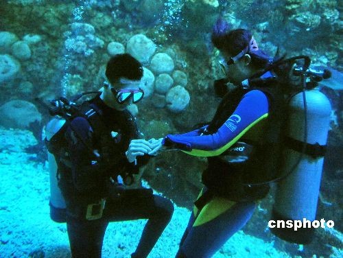 圖:青島情侶水下演繹浪漫情人節(jié)(2)