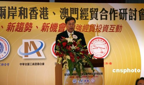 2月18日,第九屆海峽兩岸和香港、澳門經(jīng)貿(mào)合作研討會(huì)在臺(tái)北亞太會(huì)館開幕。