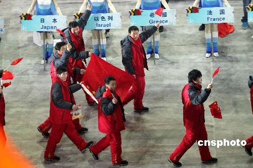 圖為在開幕式上中國代表團(tuán)入場。中新社發(fā) 富田 攝
