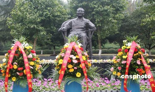 2月19日,廣安區(qū)協(xié)興鎮(zhèn)牌坊村村民在為小平銅像獻(xiàn)花以示懷念。當(dāng)日,是世紀(jì)偉人鄧小平逝世12周年紀(jì)念日,四川省廣安市和來自全國各地的各界人士紛紛自發(fā)前來為鄧小平銅像獻(xiàn)花以示深切懷念。中新社發(fā) 杜修戰(zhàn) 攝