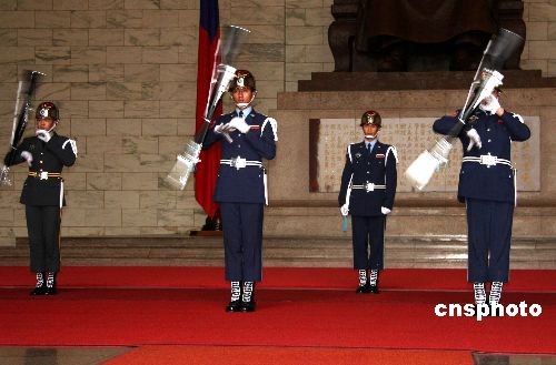 2月21日,臺灣“中正紀(jì)念堂”儀仗隊正在進(jìn)行精彩的表演。自1月24日恢復(fù)儀仗隊表演以后,紀(jì)念堂內(nèi)游客大增。中新社發(fā) 陳立宇 攝