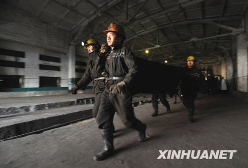 2月22日,救援人員抬出一具遇難者遺體走出礦井。燕雁 攝