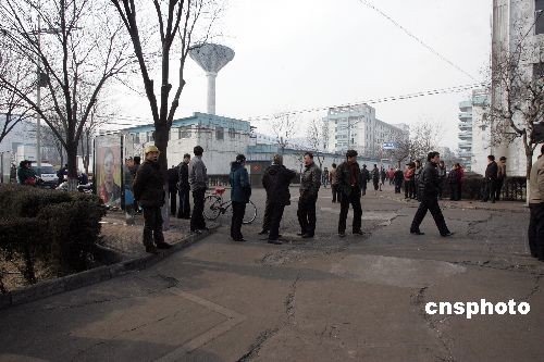 圖為圍觀的礦工親屬久久不愿離去。中新社發(fā) 張云 攝