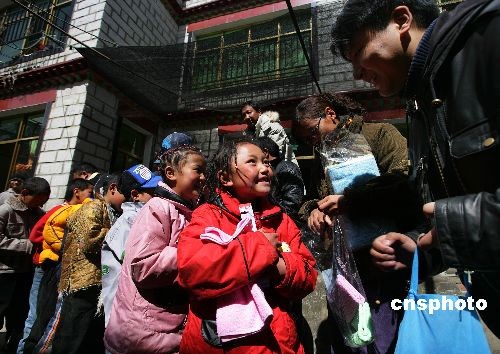 2月28日,藏歷大年初四,拉薩市希望角公益組織十幾名青年志愿者來到位于拉薩城關(guān)區(qū)的曲珍孤兒院,利用休息周六時(shí)間來看望孩子們,給孩子們帶來玩具、食物和文具等,并和孩子們做游戲等。曲珍孤兒院成立于2001年11月,由一個(gè)叫尼瑪?shù)牟刈迦碎_辦,現(xiàn)有七十多名孩子,經(jīng)費(fèi)由尼瑪個(gè)人和各種公益組織提供。中新社發(fā) 劉震 攝