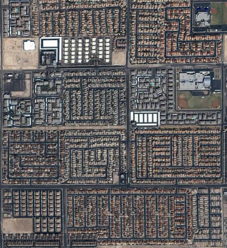 拉斯維加斯街景:這張由商業(yè)衛(wèi)星IKONOS攝于2004年9月的衛(wèi)星圖,顯示了內(nèi)華州拉斯維加斯繁華熙攘的街道和房屋。