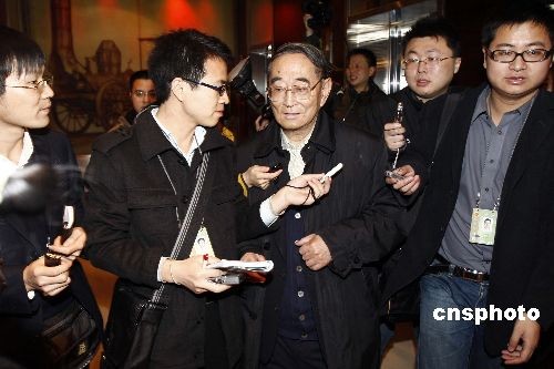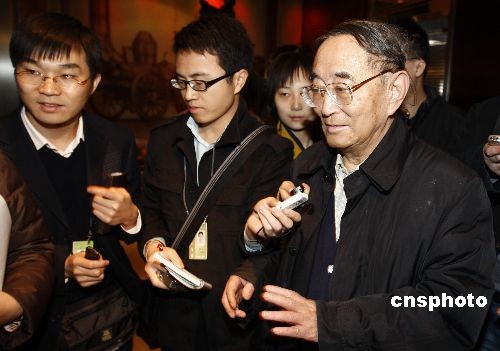 全國“兩會”即將開幕,代表、委員們3月2日陸續(xù)抵京報到。圖為民盟中央原名譽副主席、北京大學光華管理學院名譽院長厲以寧在北京駐地報到時遭遇記者“圍攻”采訪。中新社發(fā) 盛佳鵬 攝