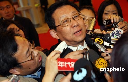 3月3日下午,商務(wù)部部長陳德銘參加全國政協(xié)十一屆二次會(huì)議開幕會(huì)時(shí)被記者圍堵采訪,他表示中國的經(jīng)濟(jì)仍然在增長,不能說進(jìn)入衰退。中新社發(fā) 傅丹丹 攝