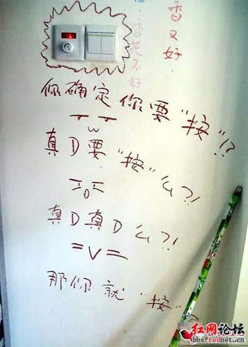 “我十分無語!痹诳戳伺盔f把宿舍惡搞之后,網(wǎng)友“泥巴”不解竟然還有那么多人來叫好!“在放假前夕,把學校搞成垃圾場一樣,被罰款了不說,校方得重新粉刷墻壁不說,作為大學生的自身素質也該遭受到質疑了!”