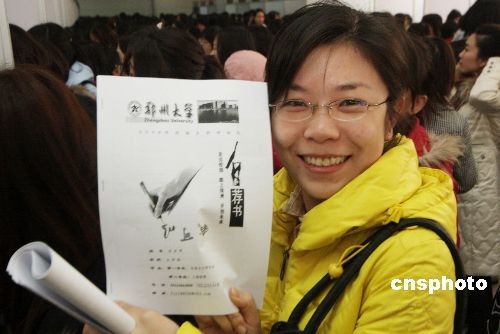 2009年3月4日,前來(lái)應(yīng)聘的女大學(xué)生擠滿了會(huì)場(chǎng)!叭恕眹(guó)際婦女節(jié)前夕,北京市2009年女大學(xué)生專場(chǎng)招聘會(huì)在北京市畢業(yè)生就業(yè)市場(chǎng)舉辦,吸引了數(shù)萬(wàn)女大學(xué)生到場(chǎng)應(yīng)聘。中新社發(fā) 吳芒子 攝
