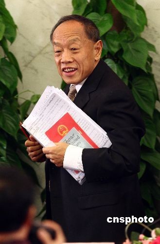3月4日,十一屆全國人大二次會(huì)議新聞發(fā)布會(huì)在北京人民大會(huì)堂舉行,大會(huì)發(fā)言人李肇星手拿《聯(lián)合國憲章》和《中華人民共和國憲法》出席發(fā)布會(huì),笑對(duì)記者的刁鉆提問。中新社發(fā) 杜洋 攝
