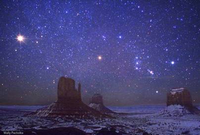 圖片中顯示的美國猶他州和亞利桑那州邊境上空的美麗夜景,明亮的星星照亮了整個夜空,給荒蕪的山谷蒙上了一層神秘的浪漫色彩。目前,國際天文學(xué)聯(lián)合會正在聯(lián)合多個組織,如“捍衛(wèi)夜間星光”、“國際暗夜周”、“國際路邊天文夜”、“天文學(xué)家無國界”以及“夜間世界”等,共同在這一地區(qū)拍攝各種極具啟發(fā)性夜色照片。上述組織向參加攝影師提供的幫助包括膠片、主題景點(diǎn)的描述、相關(guān)歷史、文化或者環(huán)境方面的介紹,同時還攝影師們灌輸環(huán)保理念,以及相關(guān)的類似于和平、生態(tài)和光污染等全球性問題。