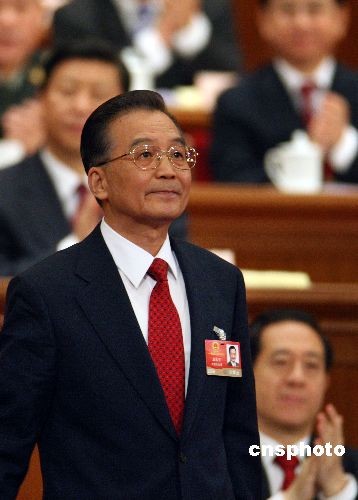 3月5日上午,十一屆全國人大二次會(huì)議在北京人民大會(huì)堂開幕,國務(wù)院總理溫家寶作《政府工作報(bào)告》,代表們多次報(bào)以熱烈掌聲。中新社發(fā) 任晨鳴 攝
