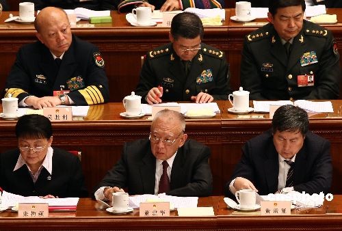3月5日上午,十一屆全國(guó)人大二次會(huì)議在北京人民大會(huì)堂開(kāi)幕。全國(guó)政協(xié)副主席、前香港特首董建華(下排中)列席。中新社發(fā) 杜洋 攝