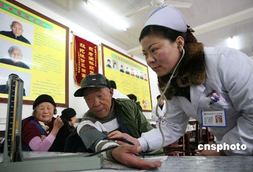 3月5日,安徽蒙城縣第一人民醫(yī)院的青年志愿者攜帶有關(guān)診療器械,來(lái)到縣民政局光榮敬老院義務(wù)為這里的老人們測(cè)量血壓、檢查身體,并接受老年健康咨詢(xún),以實(shí)際行動(dòng)傳承雷鋒精神。中新社發(fā) 胡衛(wèi)國(guó) 攝