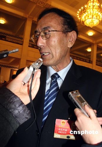 3月5日上午,十一屆全國人大二次會(huì)議在北京人民大會(huì)堂開幕。圖為西藏自治區(qū)主席向巴平措接受記者采訪。中新社發(fā) 金立冬 攝
