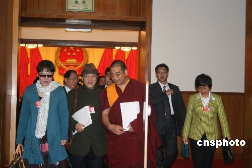 3月5日,十一屆全國人大二次會議在北京開幕。圖為西藏人大代表步出會場。中新社發(fā) 金立冬 攝