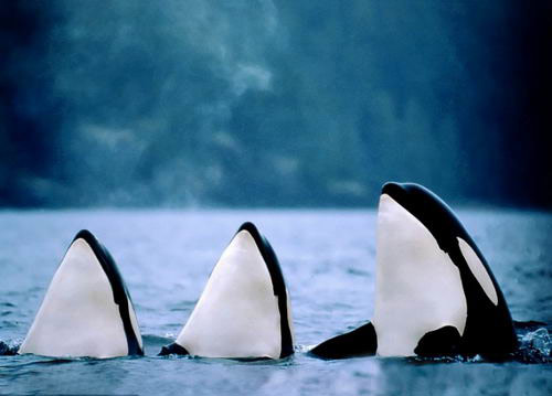 殺人鯨水中群舞。攝影師奧爾夫-?嗽诩幽么鬁馗缛A附近海域拍下了三頭野生殺人鯨(學(xué)名為虎鯨)在水中群舞的照片。