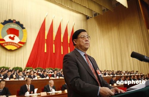 3月7日,全國(guó)政協(xié)十一屆二次會(huì)議在北京人民大會(huì)堂舉行第二次全體會(huì)議。許善達(dá)委員代表全國(guó)政協(xié)經(jīng)濟(jì)委員會(huì)作題為《把增加居民消費(fèi)作為最優(yōu)先的目標(biāo)之一》的發(fā)言。中新社發(fā) 盛佳鵬 攝