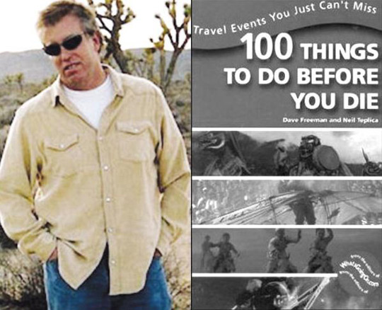 美國男子誓完成100個“人生夢想”。美國加利福尼亞州洛杉磯市維尼斯地區(qū)47歲男子戴夫·弗里曼9年前和朋友合寫了一本十分暢銷的旅行探險向導書《100個生前必做之事》,他在書中向讀者推薦了世界上100個最怪異的旅游探險地點和必做之事,包括到海地進行伏都教“朝圣”、到西班牙和公牛一起賽跑、到澳大利亞進行一年一度的夜間裸體沖浪競賽、到美國北卡羅萊納州參加喊叫競賽等。戴夫更是身體力行,發(fā)誓在生前做完書中所寫的100件事情,然而令人意想不到的是,他只完成了其中50個“人生夢想”,就于家中摔了一跤,不幸離開人世。