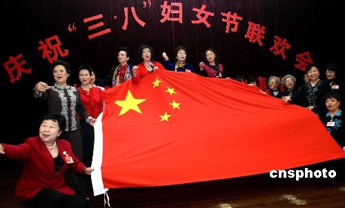 3月8日晚,參加全國政協(xié)十一屆二次會議的婦聯(lián)界委員們在駐地賓館共度婦女節(jié),聯(lián)歡會上委員們合唱“繡紅旗”把晚會推向高潮。中新社發(fā) 傅丹丹 攝