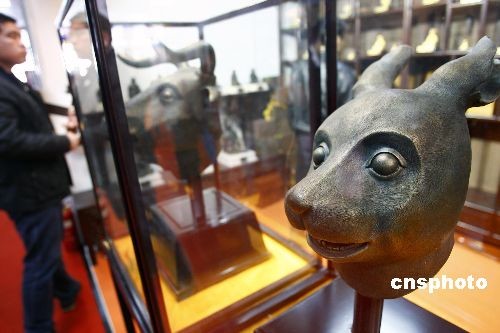 3月9日,第十九屆北京國際禮品工藝品暨家用精品展會在北京國際貿(mào)易中心開幕。本屆展會總面積達(dá)15000平方米,共有800多個(gè)展位,匯集了700多家參展商,適合不同人群的需求,讓市民可以體驗(yàn)一站式采購的服務(wù)。圖為“圓明園十二生肖獸首”--卯兔(仿制)亮相禮品展吸引不少市民的目光。中新社發(fā) 鄭雄增 攝