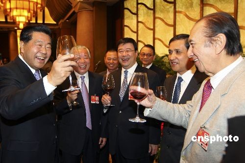 圖:賈慶林向港澳地區(qū)全國政協(xié)委員敬酒