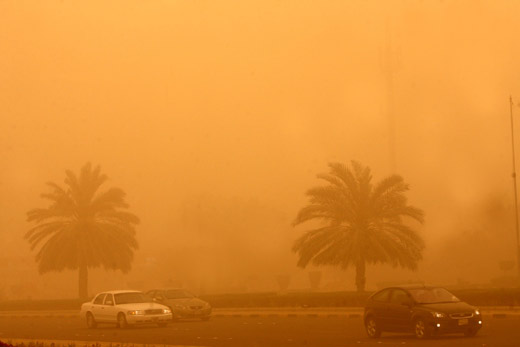 3月10日,沙特阿拉伯首都利雅得遭遇沙塵暴天氣,到處都是滾滾黃塵。沙特氣象部門稱,這次沙塵暴的強度達到了20年來的頂峰。