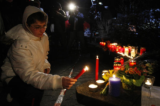 德國(guó)總理默克爾和德國(guó)聯(lián)邦政府對(duì)這起校園槍擊案“感到震驚”,對(duì)遇難者家屬表示慰問。默克爾當(dāng)天在新聞發(fā)布會(huì)上說,11日是全德國(guó)的“哀悼日”。 圖為群眾正在悼念校園槍擊案的亡者。