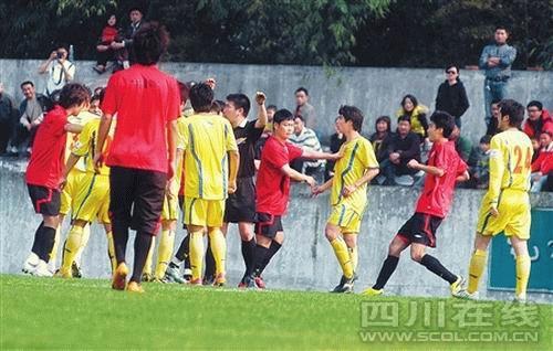 近乎荒誕的“賭球”讓成足與川足兩兄弟更像是賭氣。于是乎曾經(jīng)在一棟樓里朝夕相處的汪嵩、劉成、徐洋、干穎波、劉宇形同路人,好幾次幾人之間的對(duì)話都亮出了鞋底鞋釘。拉扯,拉扯到了將場(chǎng)邊的替補(bǔ)席撞得人仰馬翻;飛鏟,飛鏟到場(chǎng)上的草皮飛濺。這是足球么?球迷似乎都沒(méi)有思考這樣的問(wèn)題,只是不斷地嘀咕著:“太狠了!”
