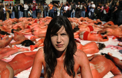 圖:動物保護組織成員裸身抗議捕獵海豹