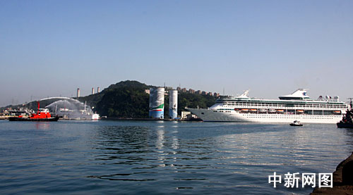 三月十六日上午八時二十分許,“安利心印寶島萬人行”首航郵輪“海洋神話號”載著一千六百名安利中國大陸首發(fā)人員緩緩駛進(jìn)臺灣基隆港。這是兩岸基本實現(xiàn)“三通”以來第一個抵臺的郵輪直航團。中新社記者 陳立宇 攝