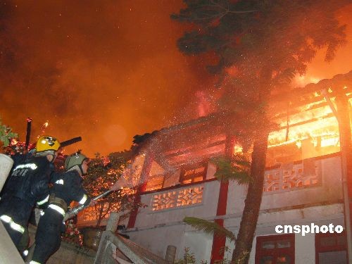 消防官兵奮力撲救火災(zāi)。 中新社發(fā) 唐海波 攝